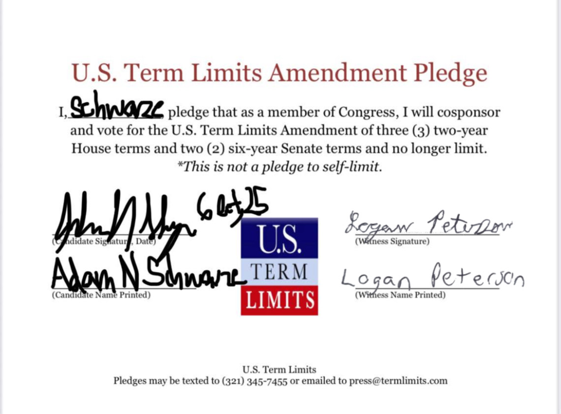 Adam Schwarze Pledges to Support Congressional Term Limits