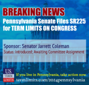 For immediate release March 11, 2024 Contact: Shanna Chamblee, U.S. Term Limits schamblee@termlimits.com Senator Mark Abraham Files Term Limits Resolution in Louisiana Baton Rouge, LA – Senator Mark Abraham (district 25) has filed Senate Concurrent Resolution 2 (SCR2) for Louisiana to join the states calling for a convention for proposing a congressional term limits amendmentRead More