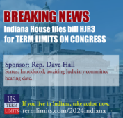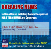 For immediate release January 24, 2024 Contact: Aaron Dukette, U.S. Term Limits Phone: 859-779-0181 adukette@termlimits.com Indiana House Committee Passes Resolution to Term Limit Congress Indianapolis, IN — The Indiana House Judiciary Committee passed House Joint Resolution 3 (HJR3), which proposes a congressional term limits amendment to the U.S. Constitution. The effort, led by RepresentativeRead More