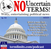 THIS WEEK IS A REPEAT EPISODE WITH AN EXTRA SEGMENT Philip Blumel: Six versus 12, does it matter? Hi, I’m Philip Blumel. Welcome to No Uncertain Terms, the official podcast of the term limits movement for the week of April 5th, 2021. Stacey Selleck: Your sanctuary from partisan politics. Philip Blumel: Citizens tell pollsters thatRead More