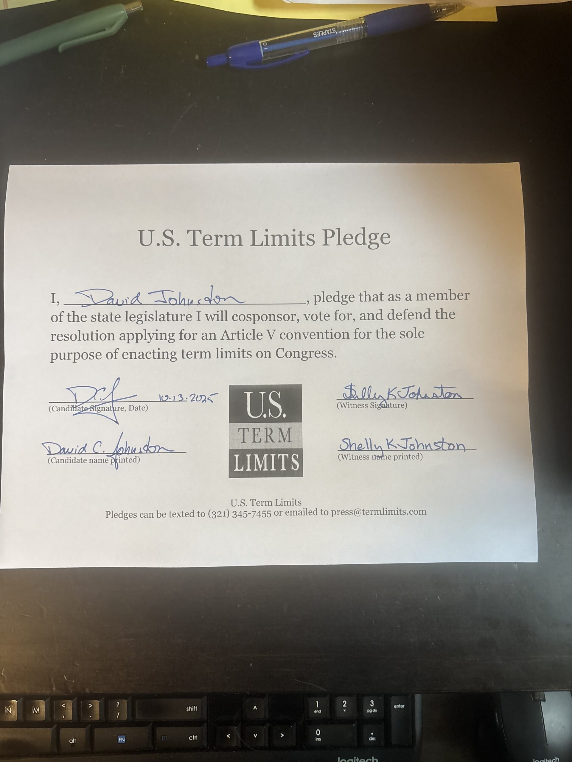 Oakbrook, SC – U.S. Term Limits (USTL), the leader in the national, non-partisan movement to limit terms for elected officials, is gathering support from state lawmakers across the nation. Its mission is to get 34 states to apply for an amendment proposal convention specific to term limits on Congress. 2025 South Carolina special election state house candidate, David Hill (district 98), has committed support for term limits on Congress by signing the term limits convention pledge. Previously, candidates David Johnston and Stephen Kohn also signed the pledge. The special primary election is scheduled for November 4, 2025.