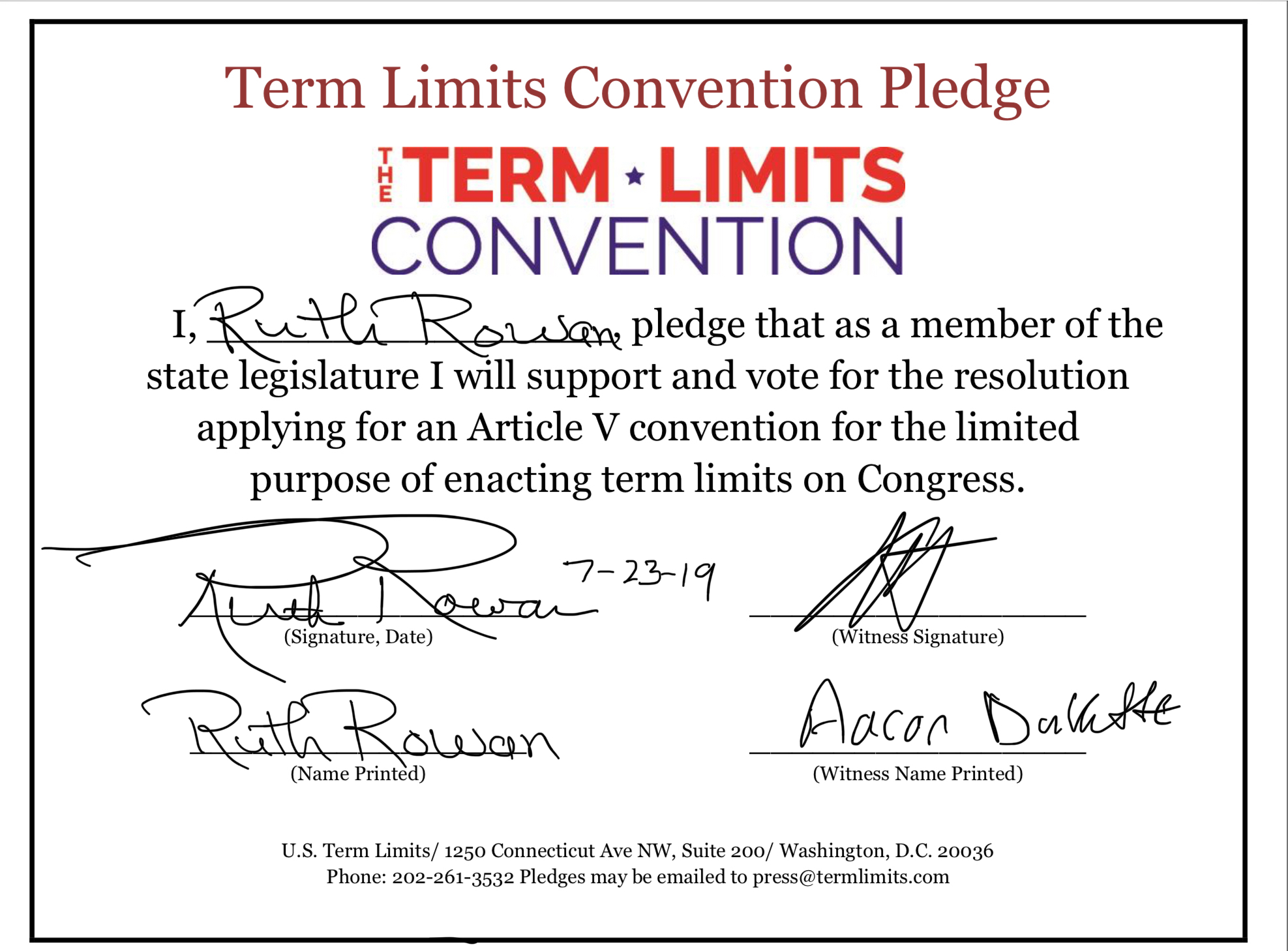 Delegate Ruth Rowan Pledges to Support Congressional Term Limits