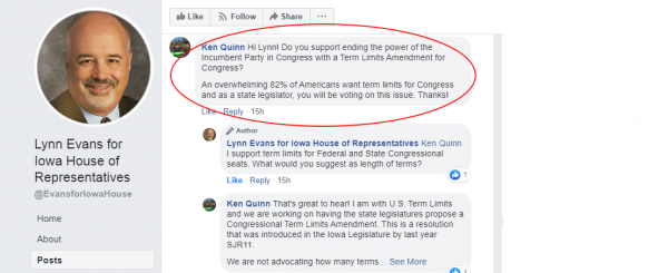 It is time to turn up the heat on these candidates by asking them publicly on their Facebook page to support Term Limits for Congress by signing our pledge! If they want to represent you in office, then it is time you interview them for the job and ask them to stand with 82% of the American voters that want term limits for Congress to put an end to these self-serving lifelong career politicians.