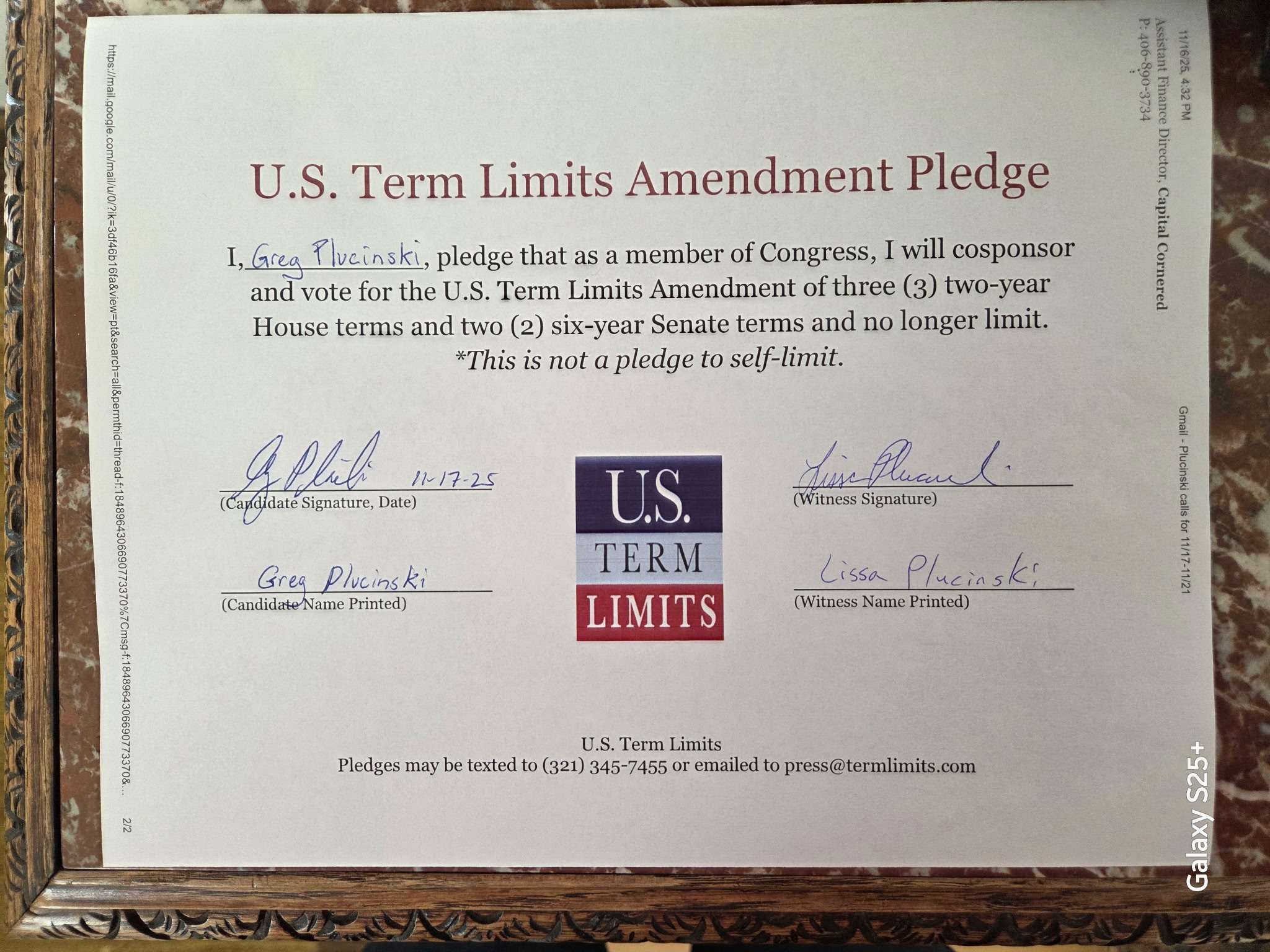Greg Plucinski Pledges to Support Congressional Term Limits