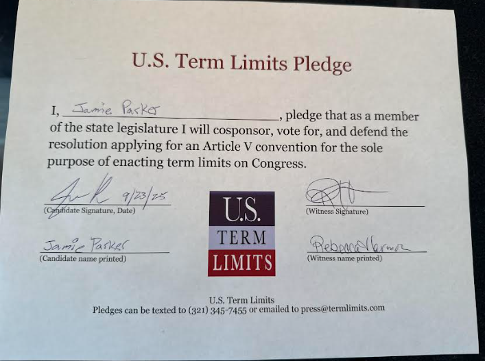 Lawrenceville, GA – U.S. Term Limits (USTL), the leader in the national, non-partisan movement to limit terms for elected officials, is gathering support from state lawmakers across the nation. Its mission is to get 34 states to apply for an amendment proposal convention specific to term limits on Congress. 2026 Georgia state house candidate, Jamie Parker (district 106), has committed support for term limits on Congress by signing the term limits convention pledge. Previously, candidate Akbar Ali signed the pledge.