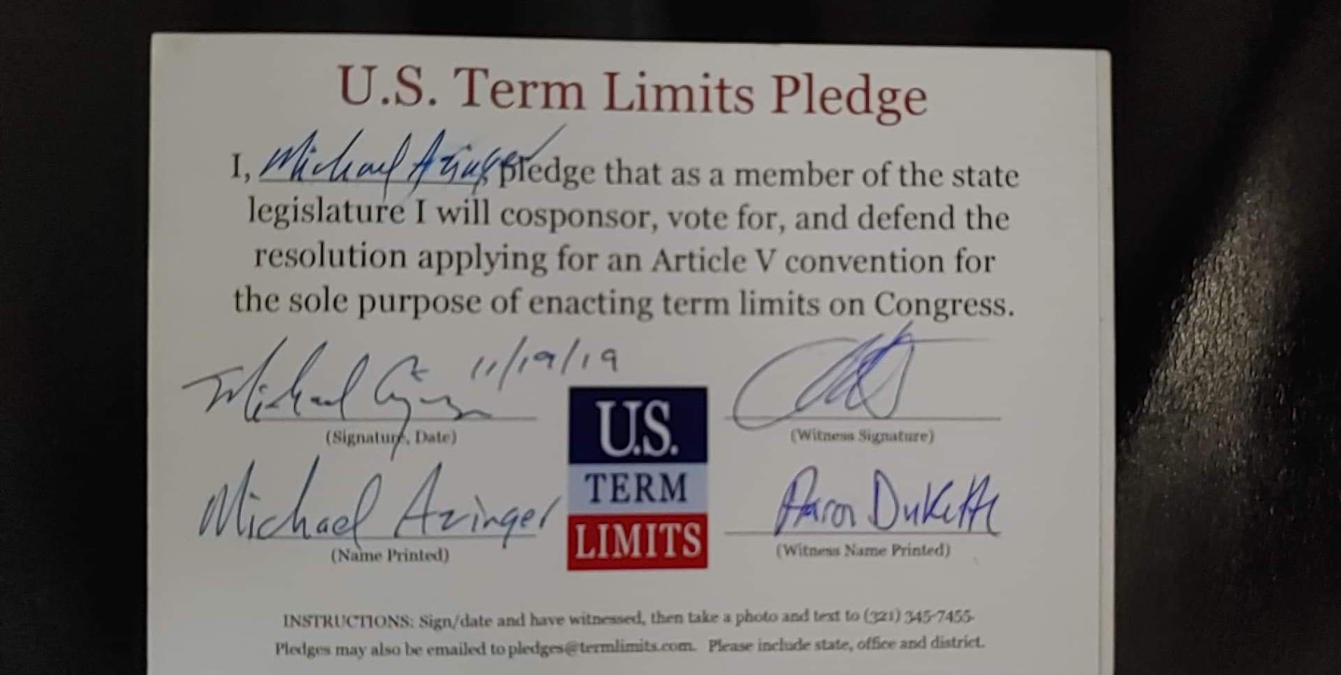 Sen. Mike Azinger Pledges To Support Congressional Term Limits