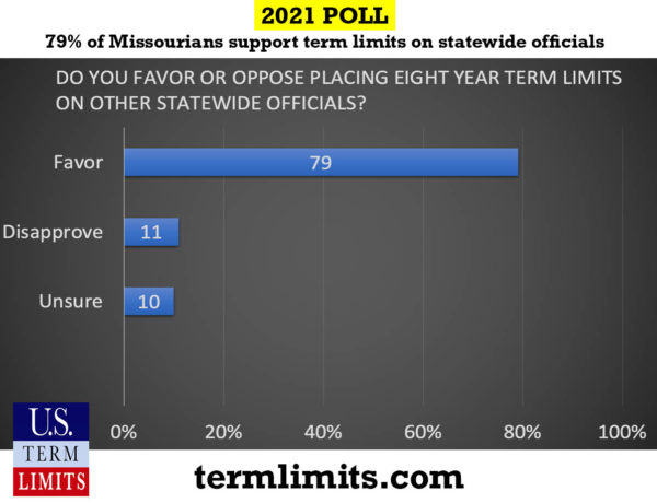 The poll, which was conducted statewide from January 6-9, showed that 79 percent of Missouri voters support an amendment to the state constitution that would create 8-year term limits for statewide officials who don’t currently have them, including the attorney general and secretary of state.