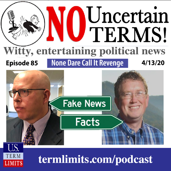 Thanks for joining us for another episode of No Uncertain Terms. It is a tragedy for our nation that professional politicians who do not face significant electoral competition and are so distant, so divorced from the concerns and needs of working Americans that they are at the helm during this current crisis. It’s enough to make you sick. America needs term limits on its Congress. You’ve signed already, I know, but let’s get our friends and family to sign the online petition for congressional term limits. Go to termlimits.com/petition, copy that webpage address and send it to everyone you know with a note urging them to sign. We’ll be back next week. Thank you.