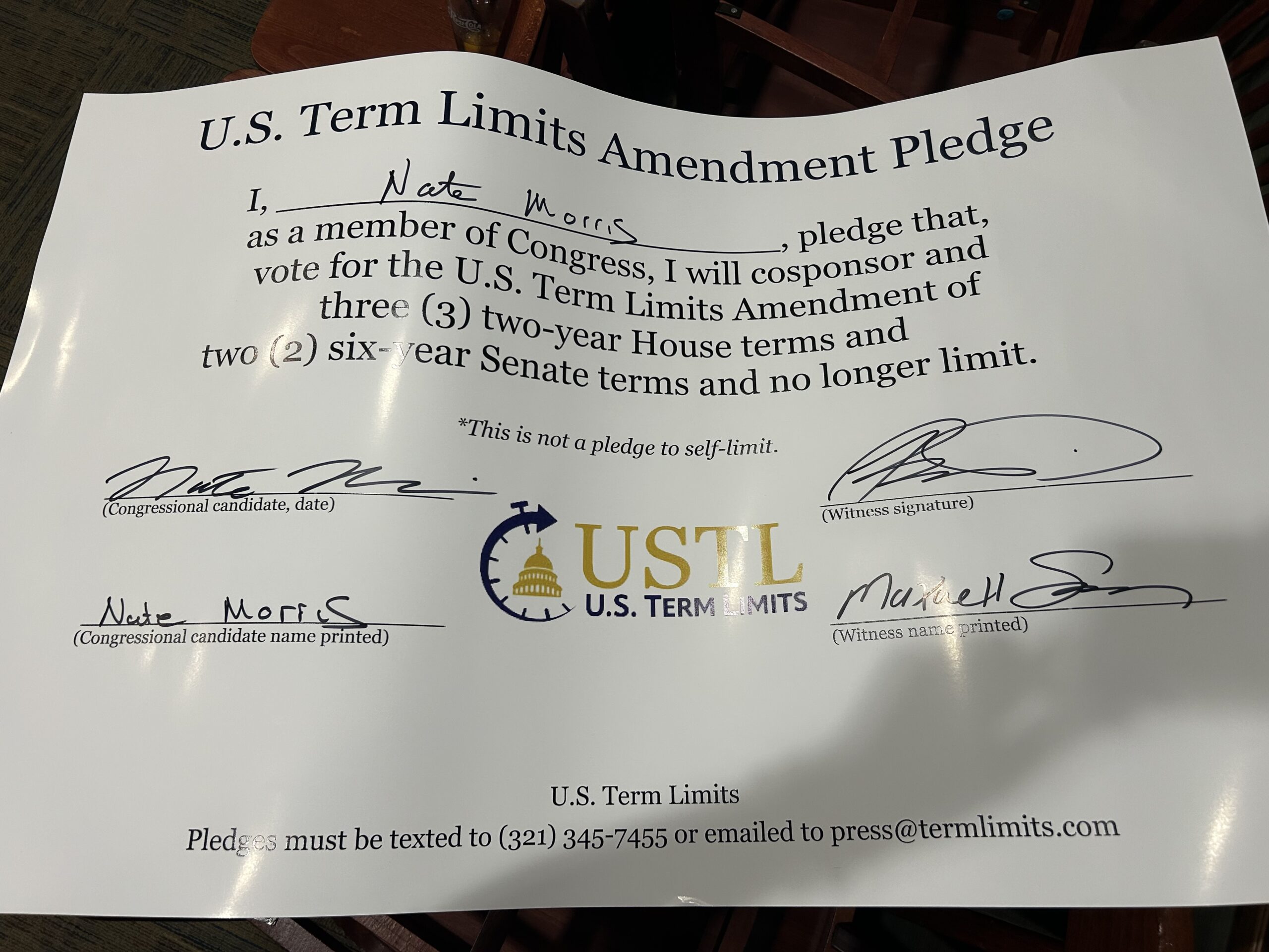 Washington D.C. – U.S. Term Limits (USTL), the leader in the non-partisan national movement to limit terms for elected officials, praises 2026 U.S. Senate candidate for Kentucky, Nate Morris for signing the pledge for an amendment to term limit Congress. Previously, candidates Wende Kennedy, Michael Faris and Amy McGrath also signed the pledge.
