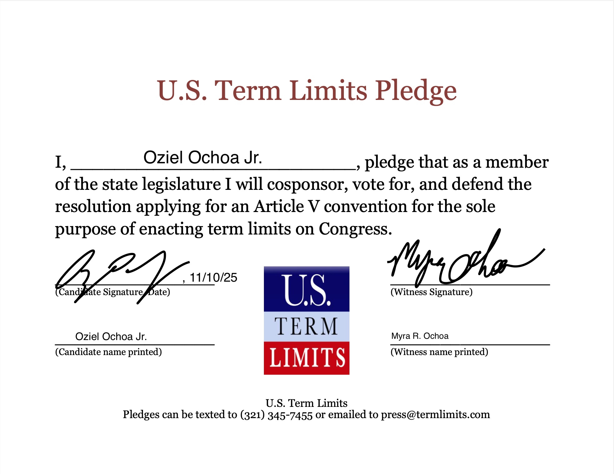 Oziel Ochoa Pledges to Support Congressional Term Limits