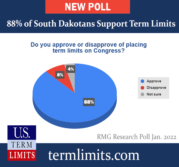 A recent poll of South Dakota voters shows broad consensus that it is time for term limits on Congress. The survey, conducted by RMG Research, Inc., found that a whopping 88 percent of the South Dakota voters polled support an amendment to the U.S. Constitution limiting the number of terms senators and house representatives may serve in the U.S. Congress.
