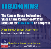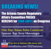 For immediate release March 19, 2025 Contact: Constantin Querard, U.S. Term Limits cq@termlimits.com Arizona Senate Committee Passes Resolution to Term Limit Congress Phoenix, AZ — The Arizona Senate Regulatory Affairs and Government Efficiency Committee passed House Concurrent Resolution 2041 (HCR2041), which proposes a congressional term limits amendment to the U.S. Constitution. The effort, ledRead More