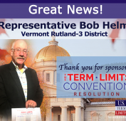 For immediate release January 15, 2019 Contact: Scott Tillman Email: stillman@termlimits.com Phone: (321) 345-7455 Rep. Bob Helm to Sponsor Congressional Term Limits Resolution in Vermont Montpelier, VT – State Representative Bob Helm (Rutland -3) is leading the way in Vermont to term limit Congress by sponsoring a resolution for a national term limits amendment proposal convention. The resolutionRead More