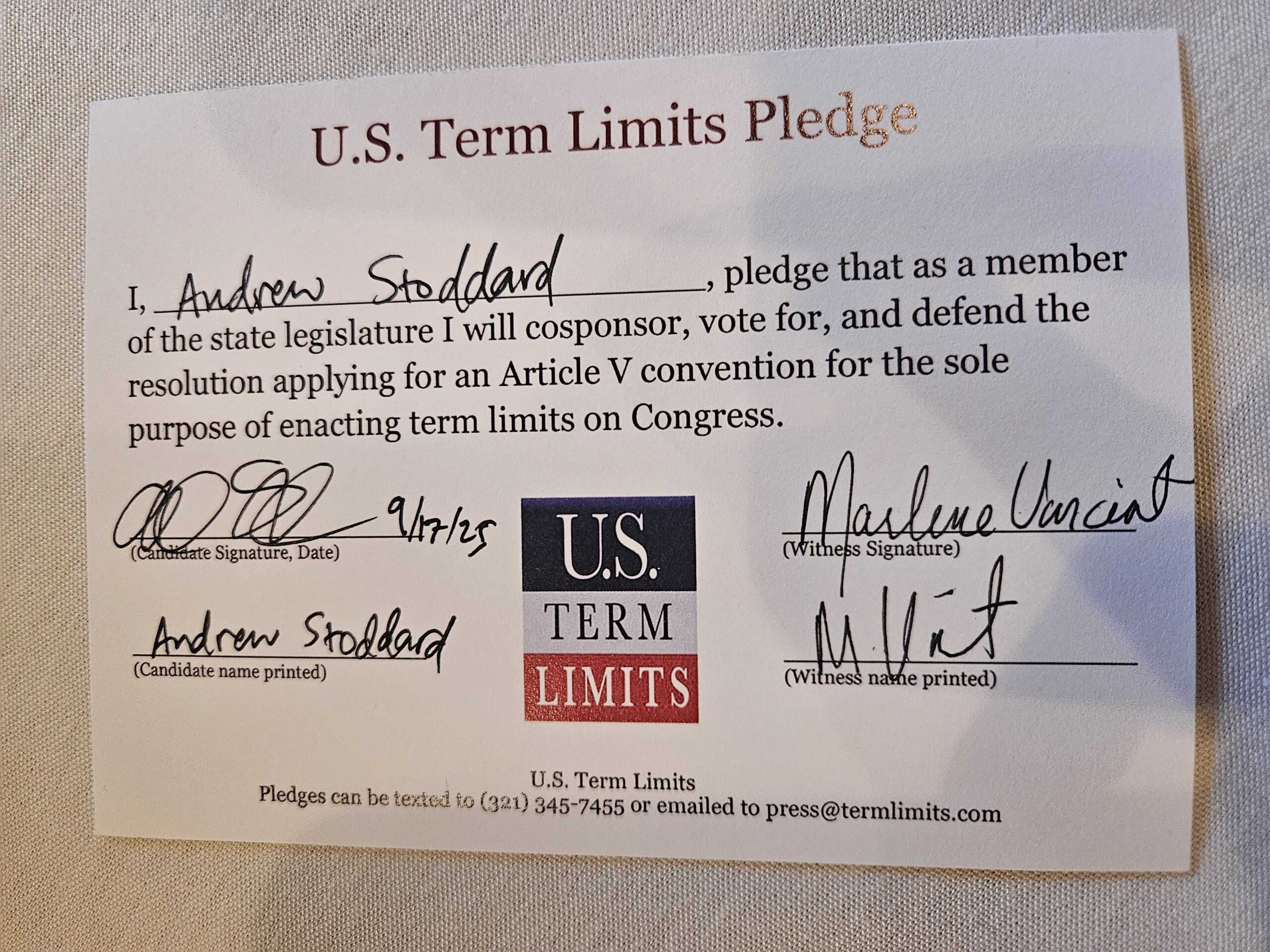 Rep. Andrew Stoddard Pledges to Support Congressional Term Limits
