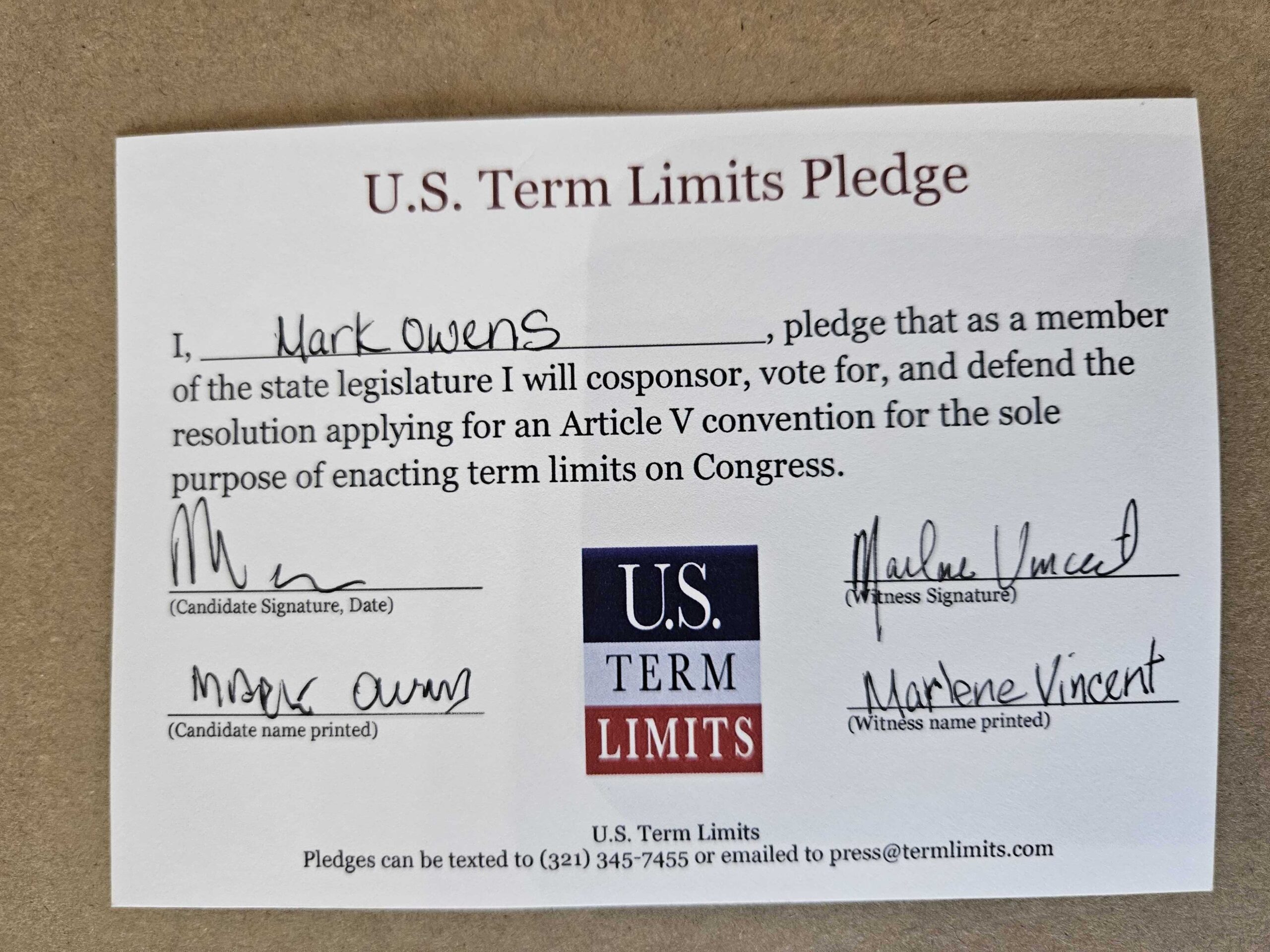 Rep. Greg Owens Pledges to Support Congressional Term Limits