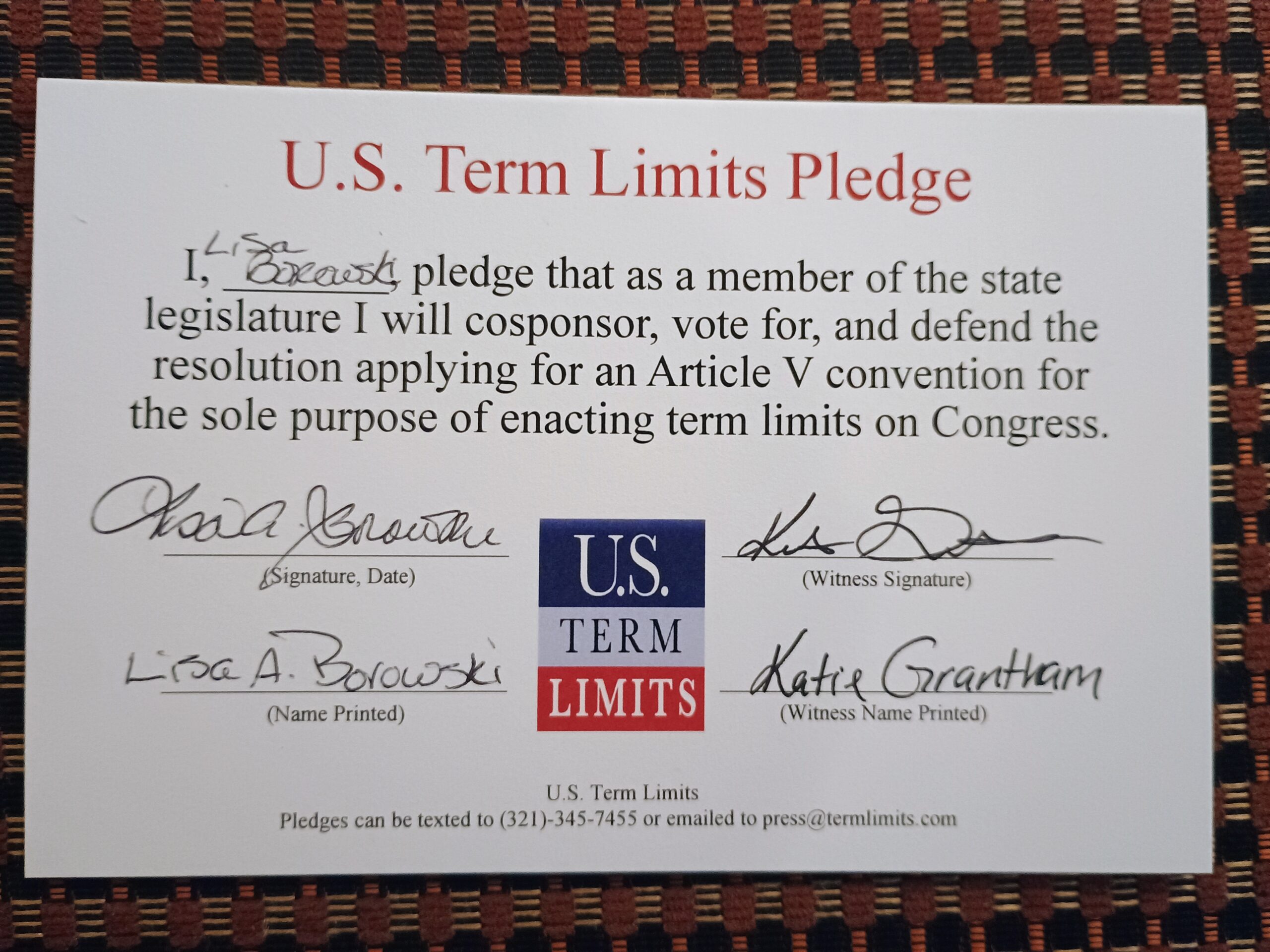 Rep. Lisa Borowski Pledges to Support Congressional Term Limits