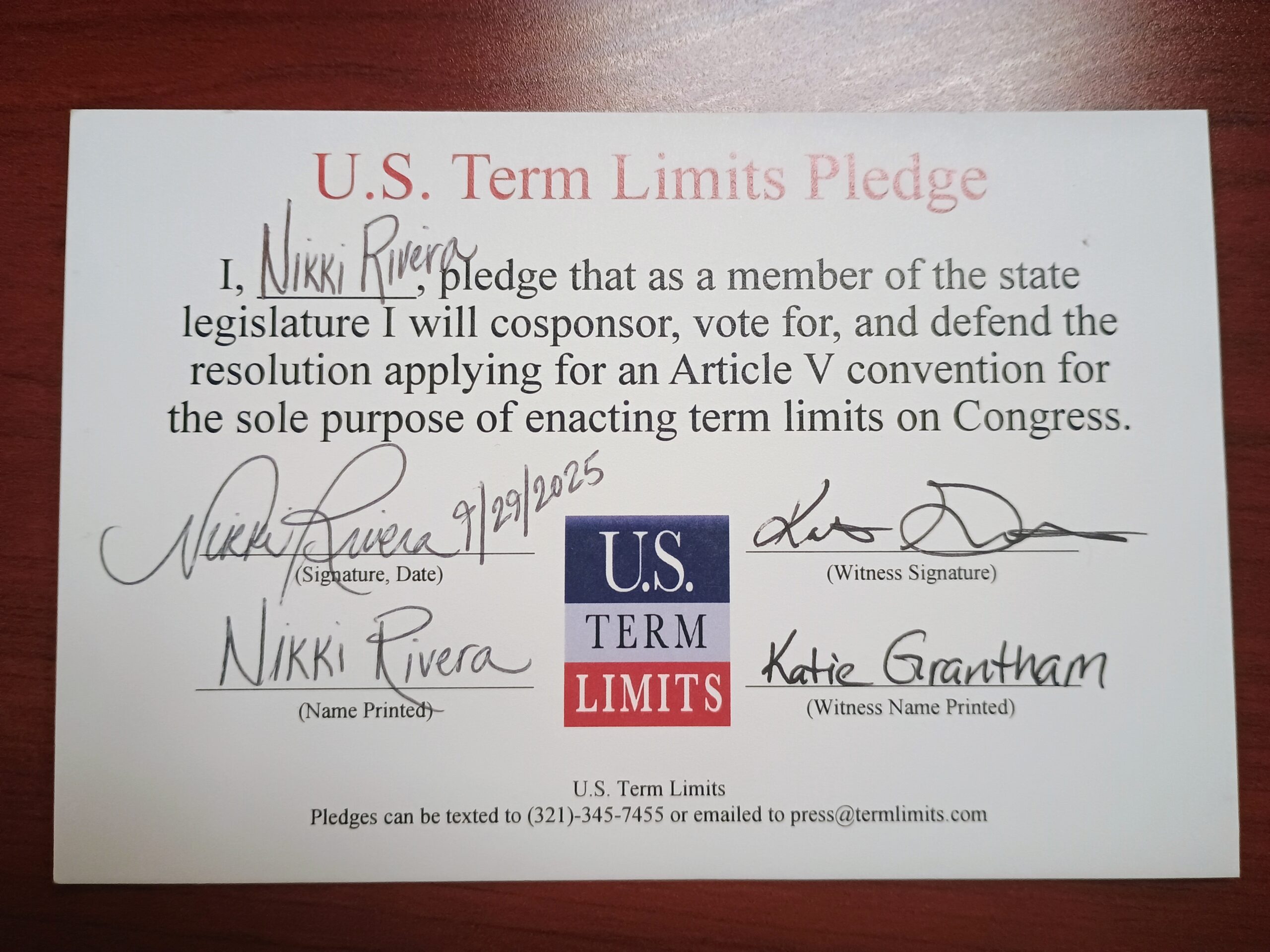 Rep. Nikki Rivera Pledges to Support Congressional Term Limits