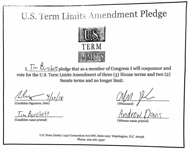 More than 92 members of Congress, including Burchett, have cosponsored the U.S. House Joint Resolution 12 (HJR12) and its counterpart in the U.S. Senate SJR3. The congressional resolutions are a means for Congress to propose the term limits amendment.