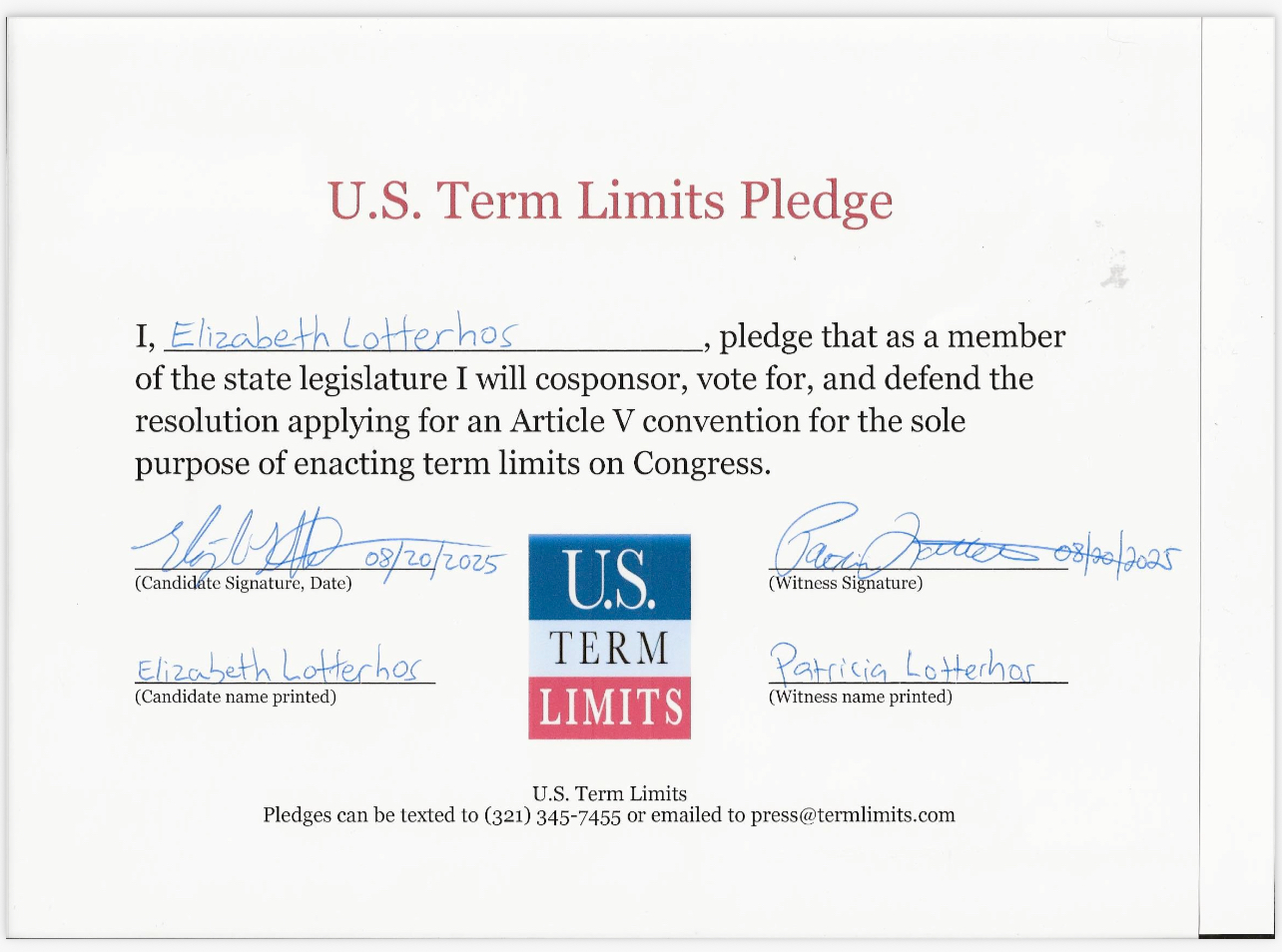 Willowbrook, TX – U.S. Term Limits (USTL), the leader in the national, non-partisan movement to limit terms for elected officials, is gathering support from state lawmakers across the nation. Its mission is to get 34 states to apply for an amendment proposal convention specific to term limits on Congress. 2026 Texas state house candidate, Kelly Peterson (district 126), has committed support for term limits on Congress by signing the term limits convention pledge. Previously, candidates Polly Looper and Elizabeth Lotterhos also signed the pledge.