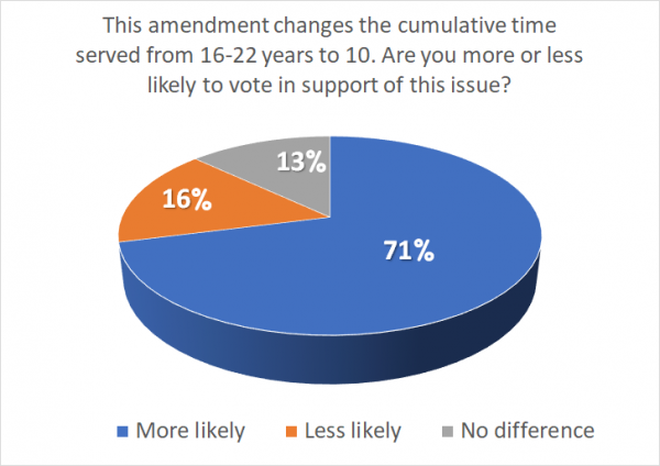 Respondents were also confronted with a common objection found within a three-block radius of the State Capitol: that term limits “create legislatures filled with inexperienced and ineffective lawmakers who are easily dominated by savvy lobbyists and bureaucrats at state agencies.” When weighing this claim against the fact that the U.S. president has an eight-year term limit, voters found the lobbyist-bureaucrat argument unpersuasive. 62% said they were more likely to back Issue 3 after hearing it, versus just 23% who became less persuaded.
