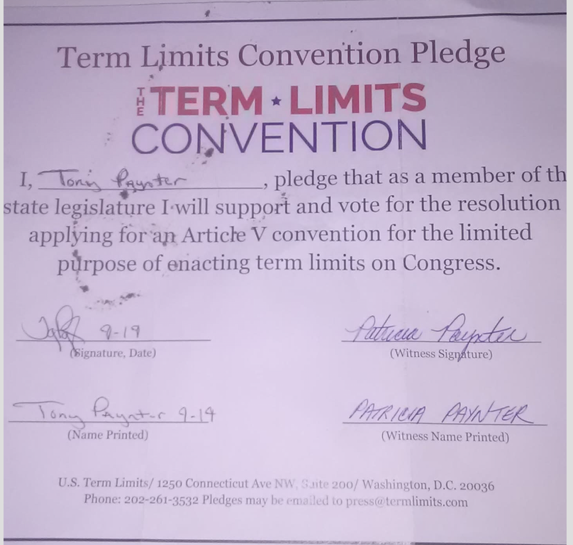 U.S. Term Limits Praises Tony Paynter for Signing Pledge