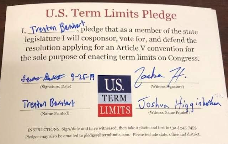 Delegate Trenton Barnhart Pledges To Support Congressional Term Limits