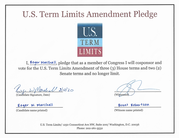 “U.S. Term limits is proud to acknowledge Senator Marshall as a champion of term limits,” said Shanna Chamblee. “It is a recognition that the seniority system just isn’t working and Congress as an institution needs to be reformed.”